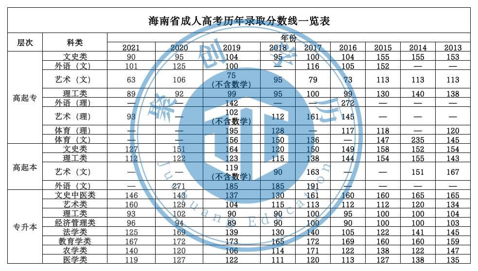 海南省成人高考历年录取分数线-尊龙凯时人生就是搏
