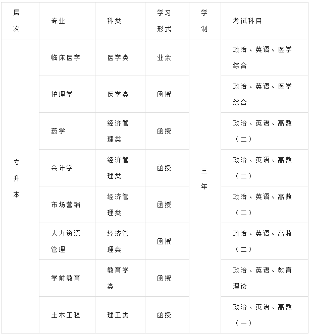 二、招生层次、专业、学制、学习形式及考试科目